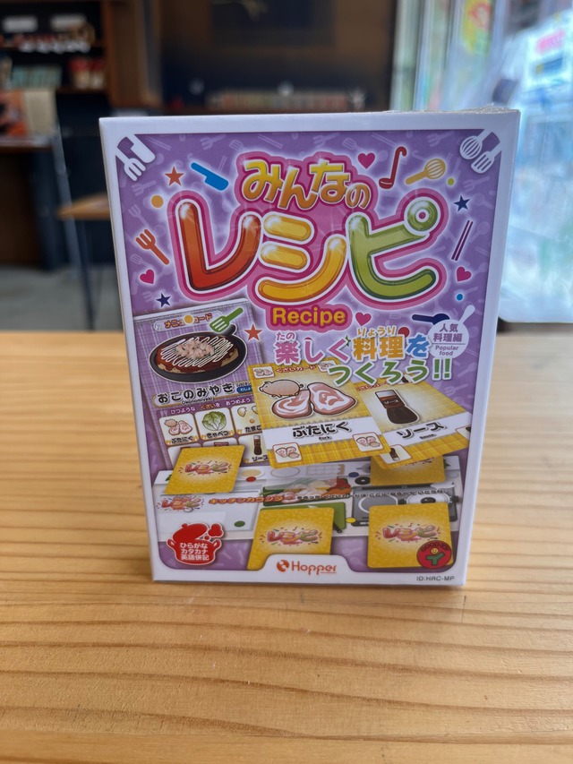 駆け引きゲーム/4歳から/2~4人/10分/自分のレシピカードに書かれた具材6種を集めて、いち早く自分の料理を完成させましょう!お料理に興味を持った頃、いろんな食材を知ったり、具材を集めながら、おうちの人の作るお料理にももっと興味を持つようになるかもしれませんね!大人気、いろんなお料理シリーズが出ています!! ホッパーエンタテインメント社 (※ゲームタイプ/対象年齢/プレイ人数/プレイ時間の目安/ゲーム説明)